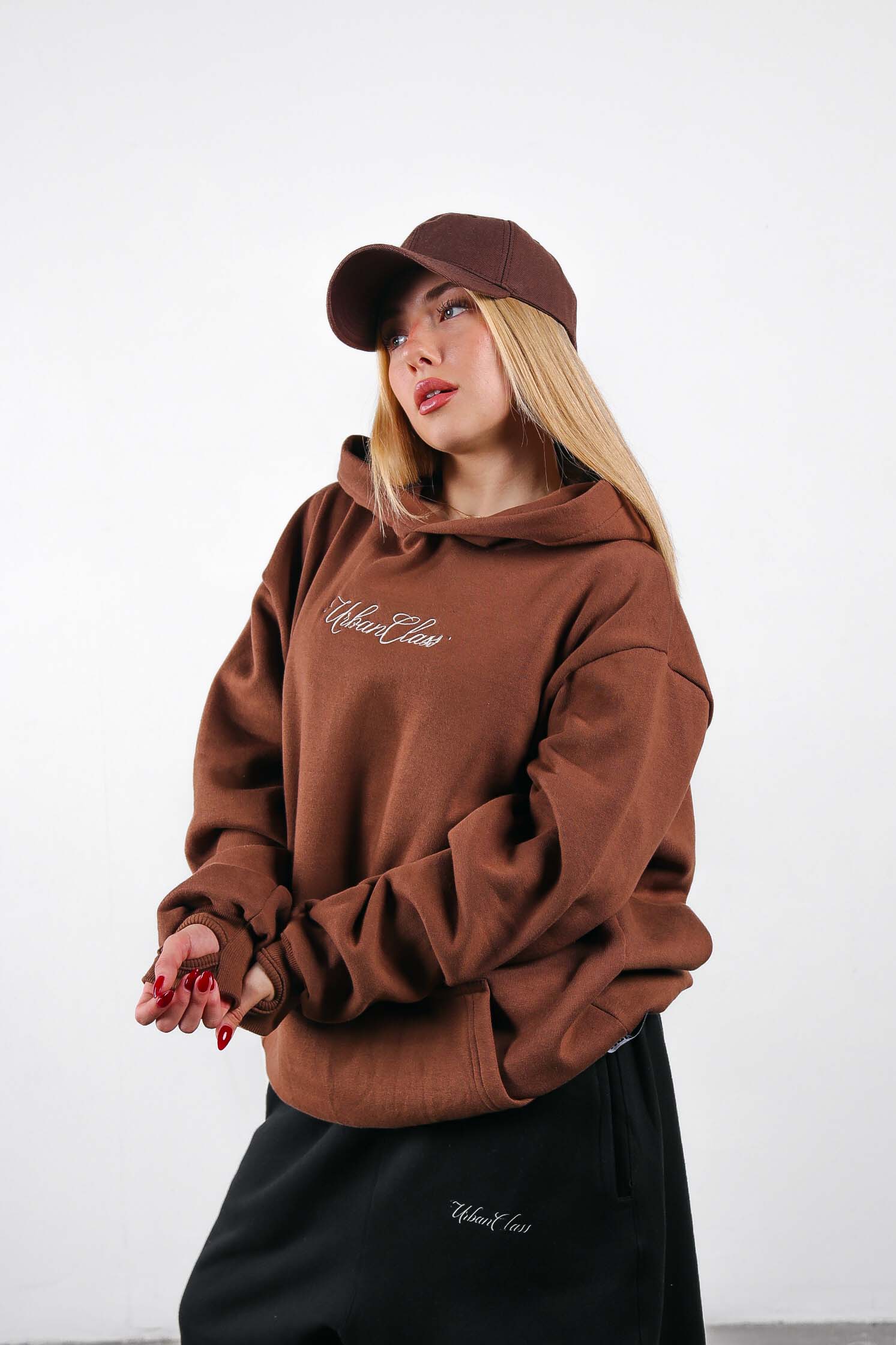Modelo de diseño especial de corte oversize, capucha forrada, con bordado delantero, haciendo alución a nuestro slogan exclusivo de nuestra segunda entrega de invierno, nos ofrece un modelo original y unico.
