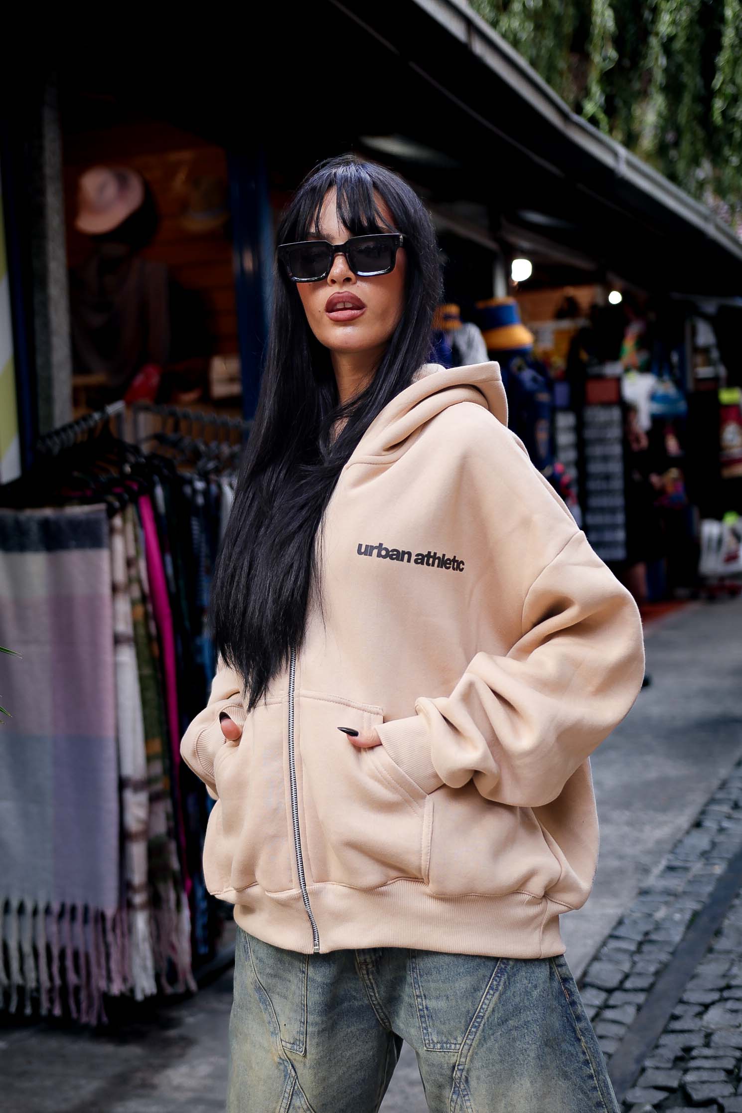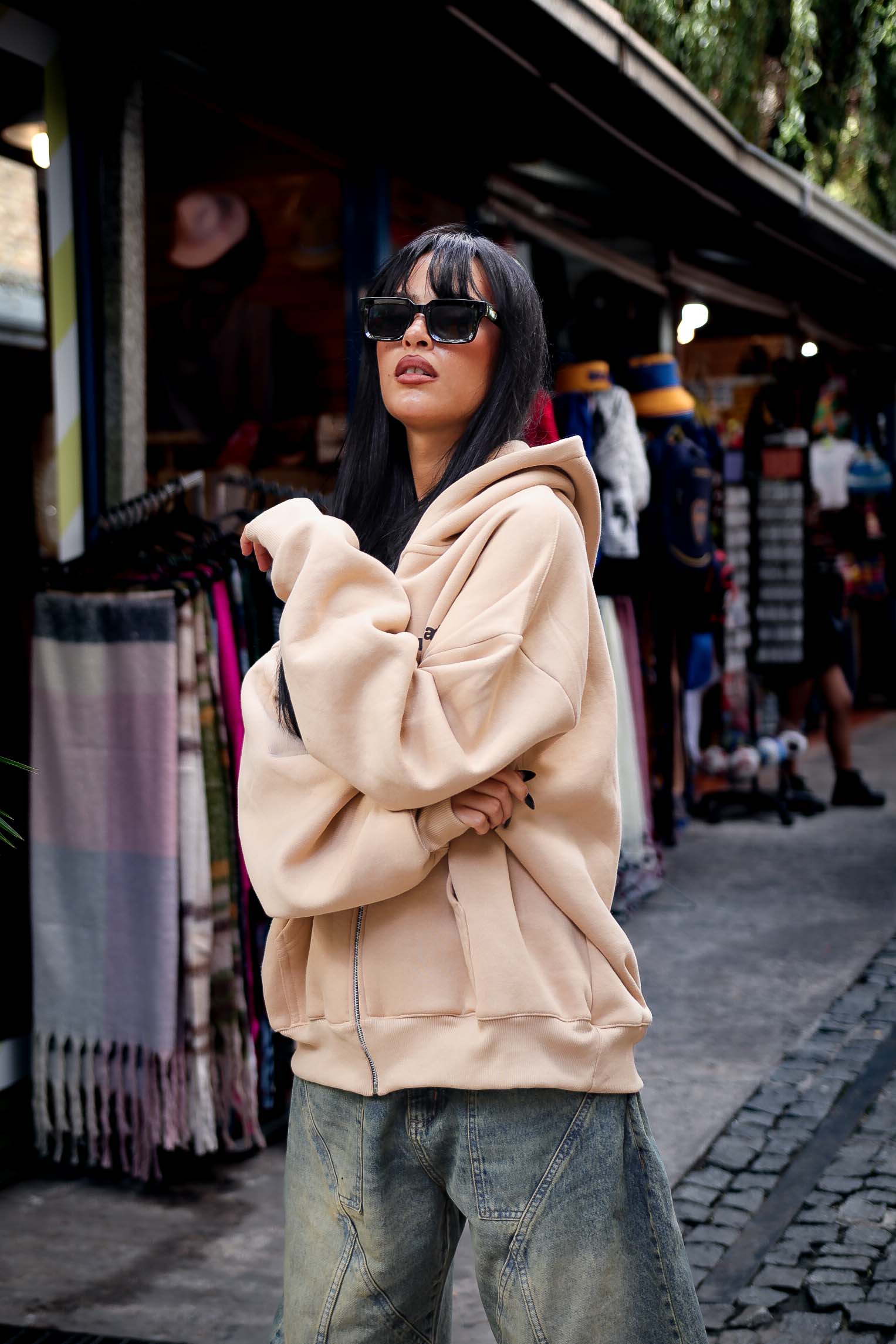 Modelo de diseño especial de corte boxy fit, capucha forrada, con estampado delantero en pecho, haciendo alución a nuestro slogan exclusivo de nuestra coleccion oficial de otoño, nos ofrece un modelo original y unico.
