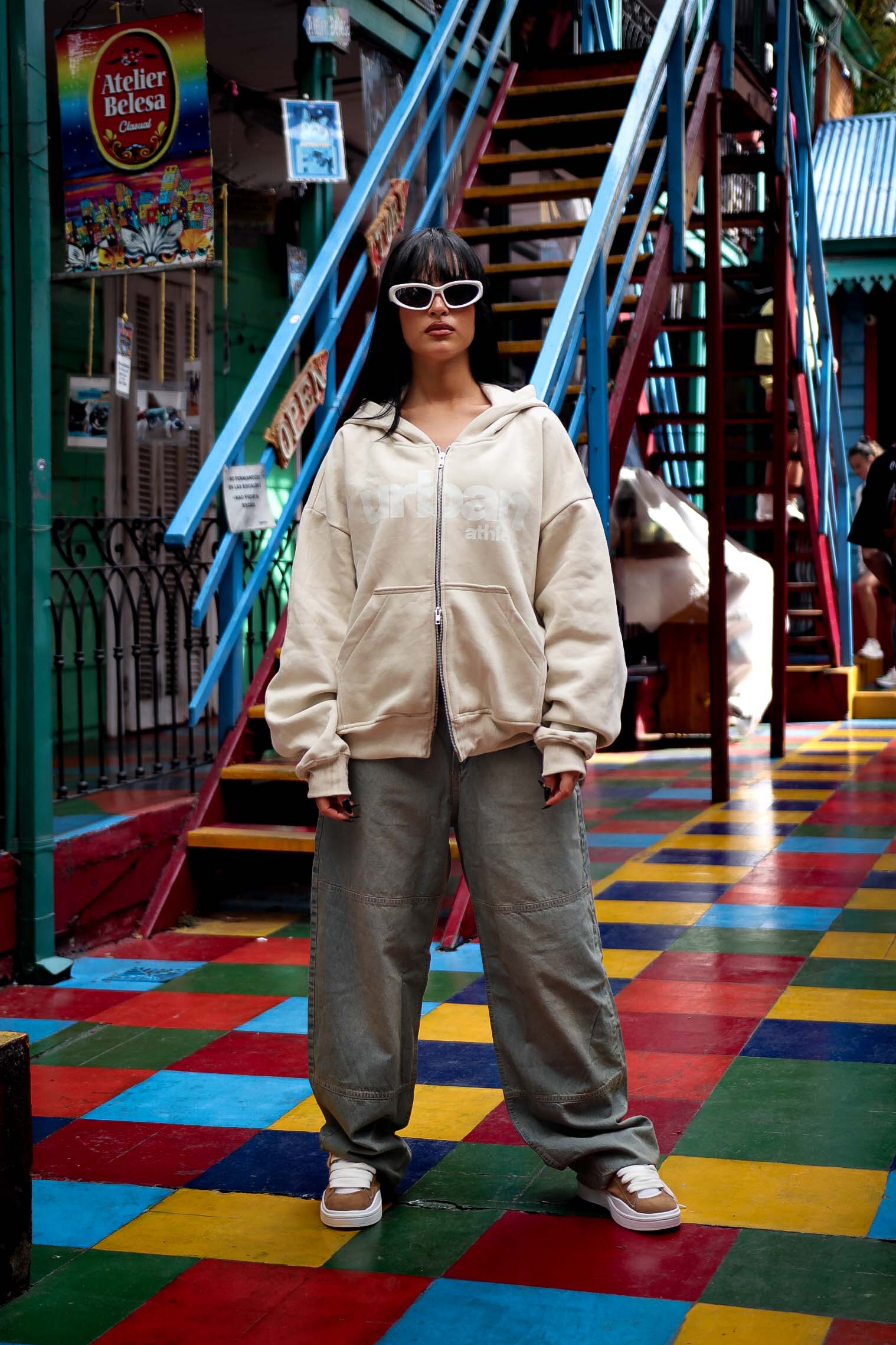 Modelo de diseño especial de corte boxy fit, capucha forrada, con estampado delantero en pecho, haciendo alución a nuestro slogan exclusivo de nuestra coleccion oficial de otoño, nos ofrece un modelo original y unico.